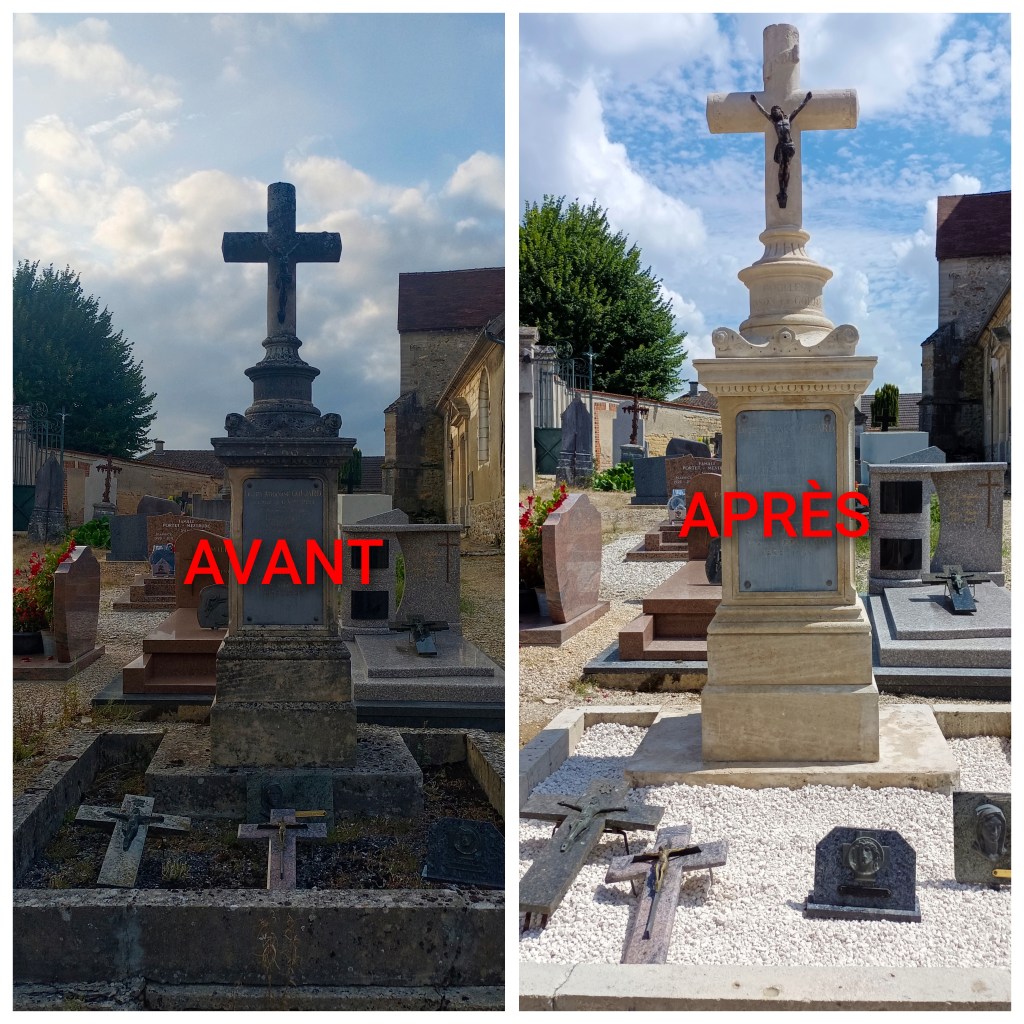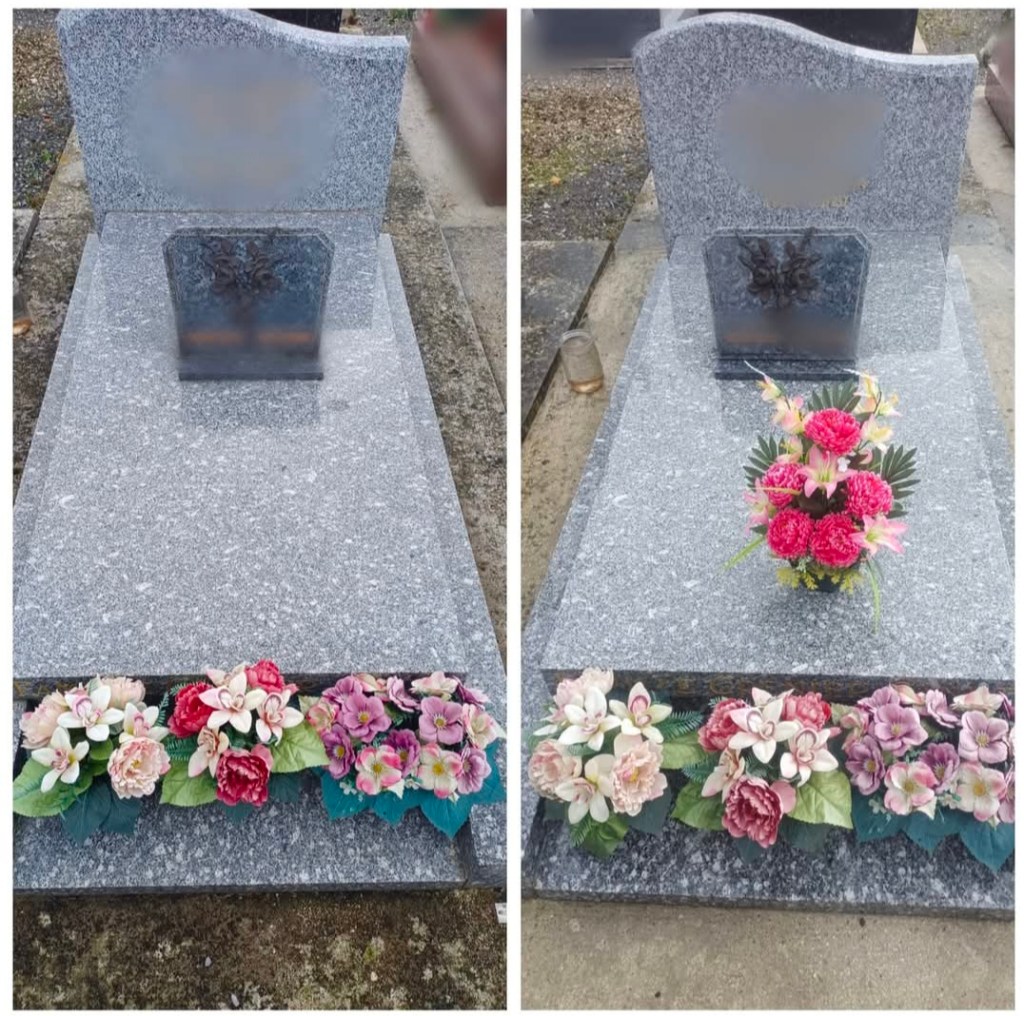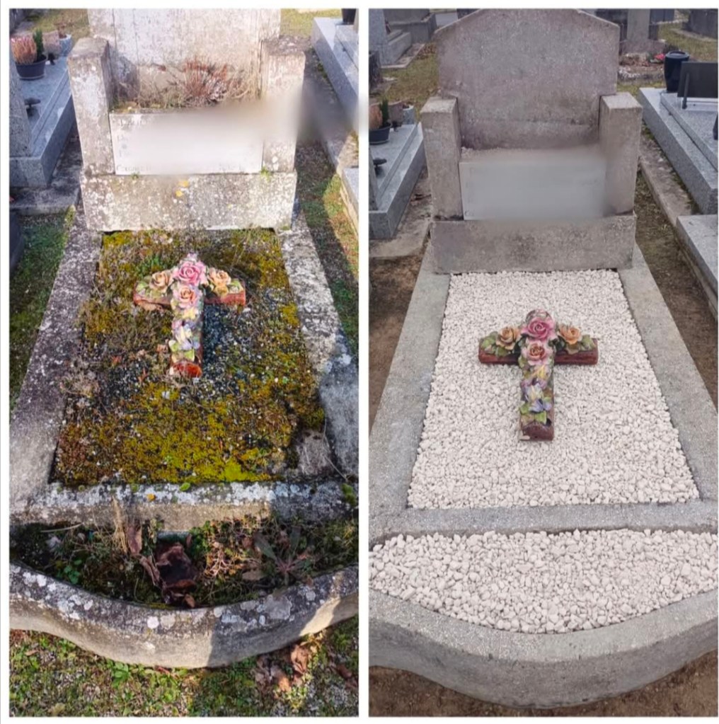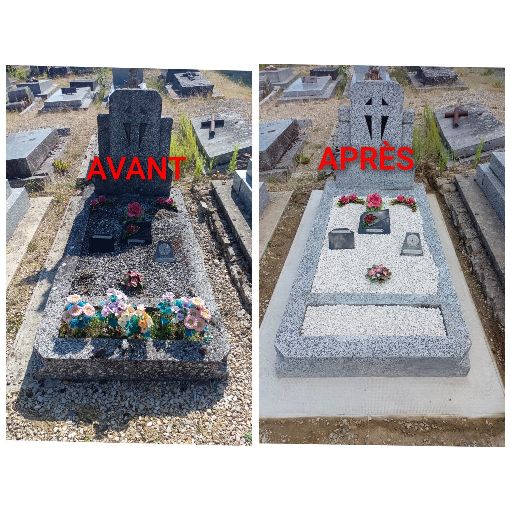 Prestations : Nettoyage, rechampissage, Entretien des tombes. Photos avant/après.